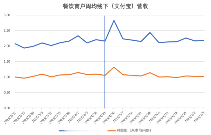 北京大学光华管理学院的研究表明,外卖大战并未挤占堂食。参与闪购优惠活动的商户线上线下营收都出现增长。未参与闪购优惠活动的商户线下收入则保持稳定,没有出现下滑。